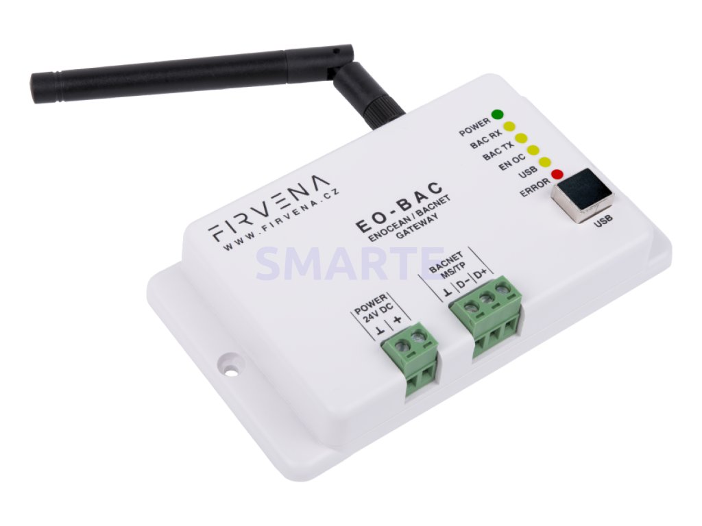 Zařízení EO-BAC je obousměrnou bránou (pracuje jako přijímač i vysílač) mezi bezdrátovým komunikačním standardem EnOcean a BACNET MS/TP s rozhraním RS 485.